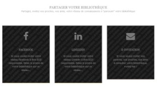 Partagez facilement l'accès à votre bibliothèque sur Facebook, Linkedin ou par email en quelques clics.